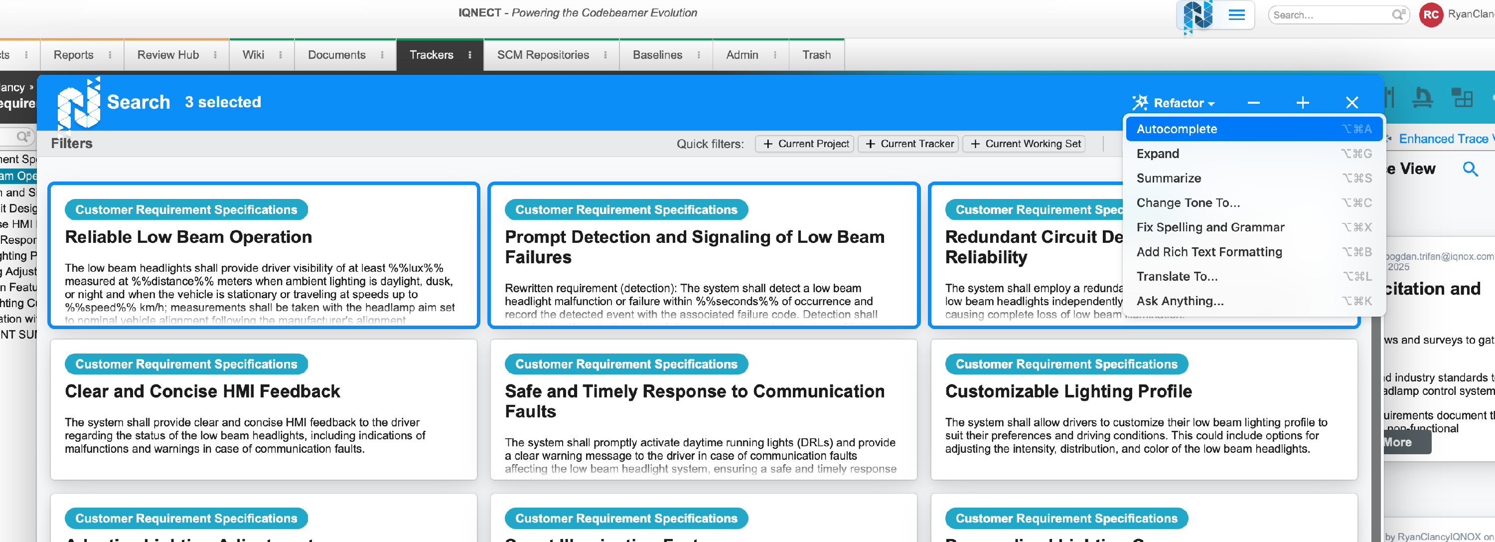 In IQNECT 26.1, Bulk Refactoring makes large-scale content updates faster and easier. You can now refactor multiple tracker items at the same time directly from the IQNECT menu, search views, and other item-based workflows.