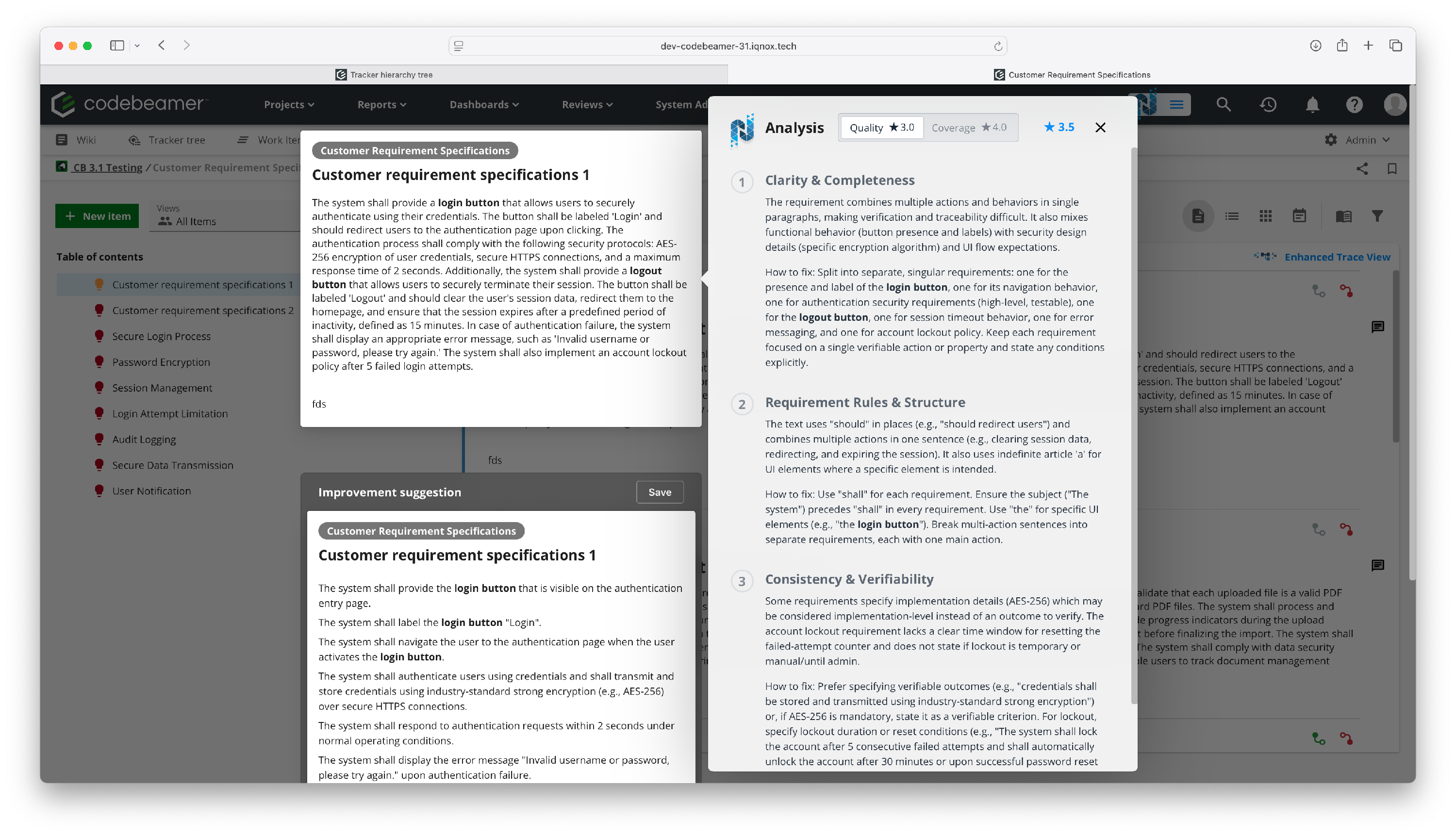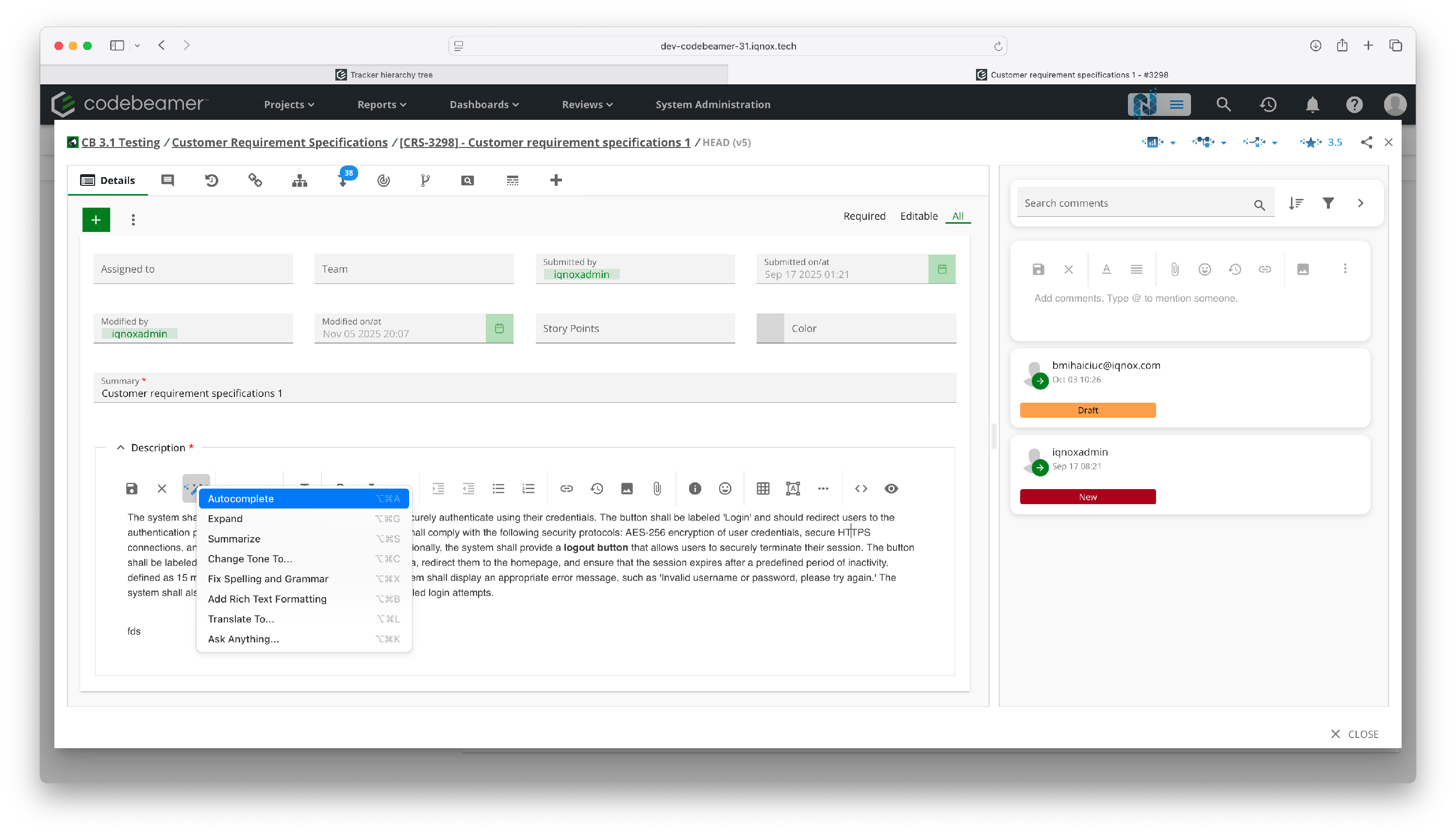 Codebeamer X (version 3.1) introduces a refreshed user interface with navigation and visual improvements. While the layout looks different, IQNECT’s tools, functionality, and workflows remain largely unchanged.