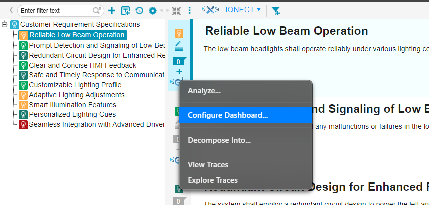 This article describes how to access and use the Dashboards in IQNECT to analyze requirements across multiple projects. The Dashboards provide key performance indicators (KPIs) at different levels of detail: project-level, resource-shape-level, and individual-resource-level.