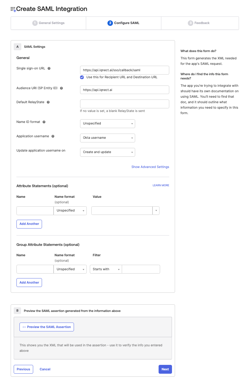 Audience URI (SP Entity ID) https://api.iqnect.ai